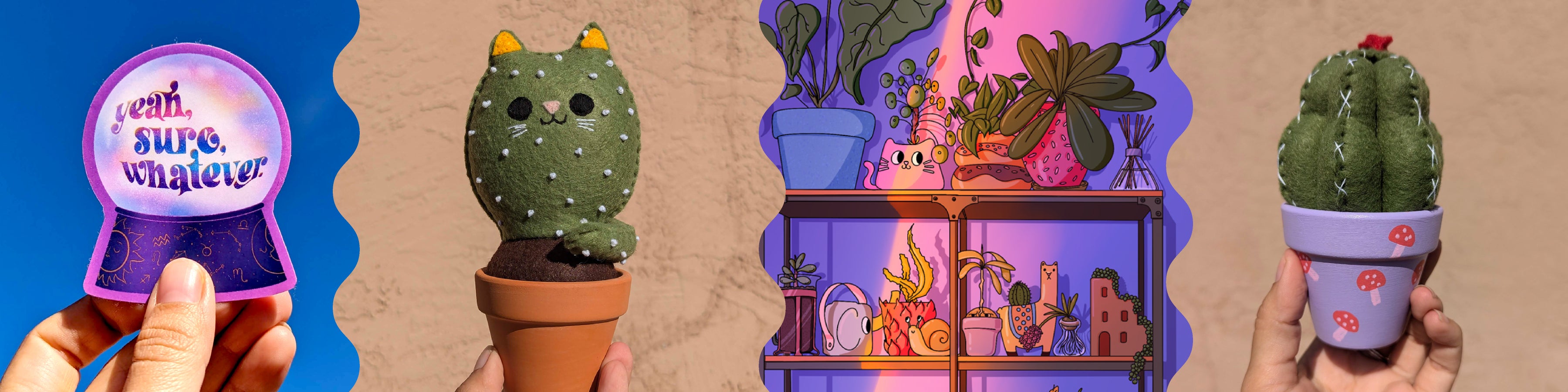 Bold, playful, and nostalgic, and whimsical Apparel, Art Prints, Stickers, Felt Goods, Cards and other Artsy Stuff.