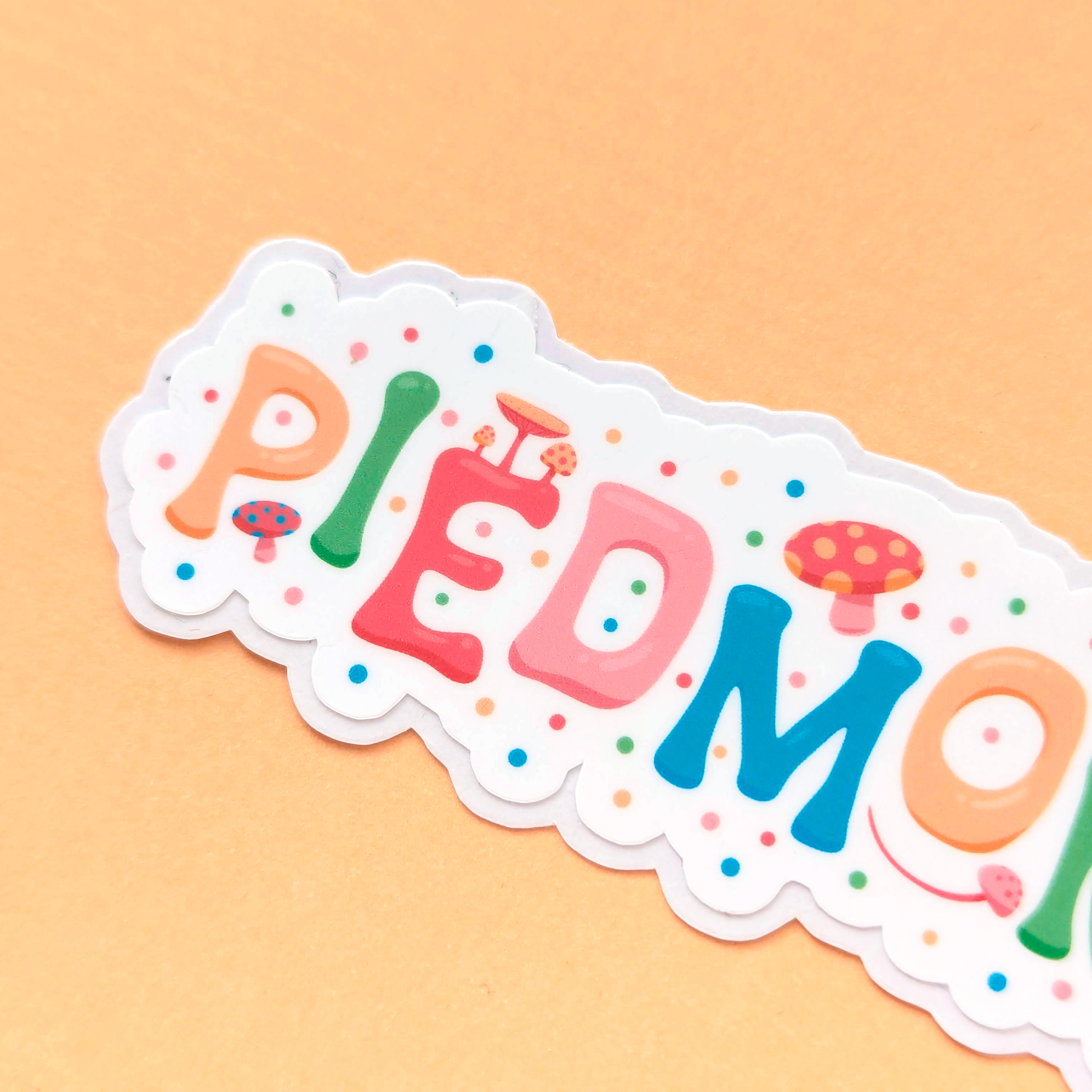 Celebrate Piedmont with this fun vinyl sticker featuring a whimsical mushroom design! It’s a great way to add a little local personality to your laptop, water bottle, notebook, or wherever you like to stick things.